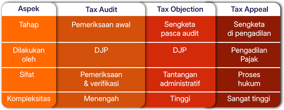 Di sinilah tax audit, objection, dan appeal berperan. Ketiganya merupakan tahapan dalam penyelesaian sengketa pajak dan memahami perbedaannya sangat penting bagi setiap bisnis.