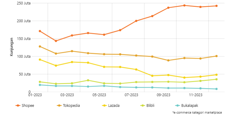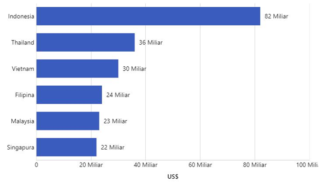 According to projections by Google, Temasek, and Bain & Company in the e-Conomy SEA 2023 report, the gross merchandise value (GMV) of e-commerce in Indonesia in 2024 will reach US$ 62 billion.