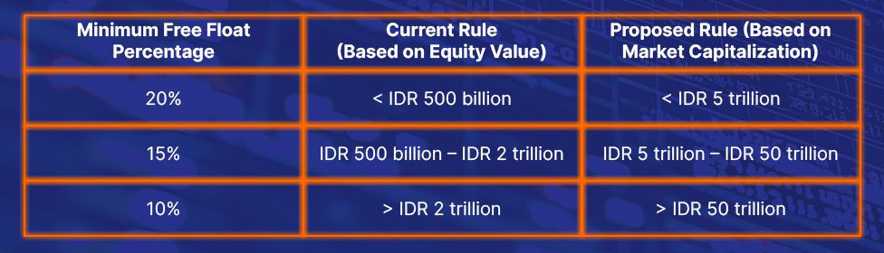 Oleh karena itu, peningkatan batas minimum free float dipandang perlu untuk mendorong perdagangan yang lebih aktif dan mencerminkan nilai pasar yang sesungguhnya.